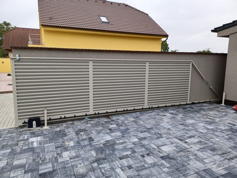 Lamelová posuvná samonosná brána - realizace Kyjov